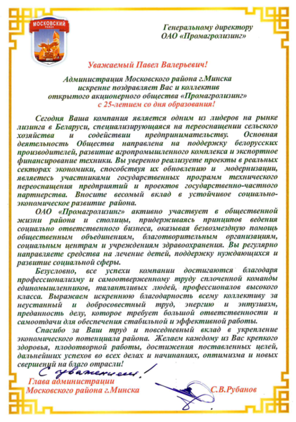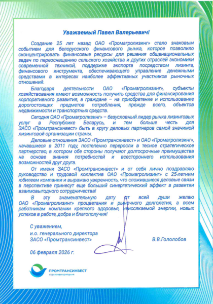 Спасибо за 25 лет вместе: Промагролизинг благодарит за доверие и поддержку